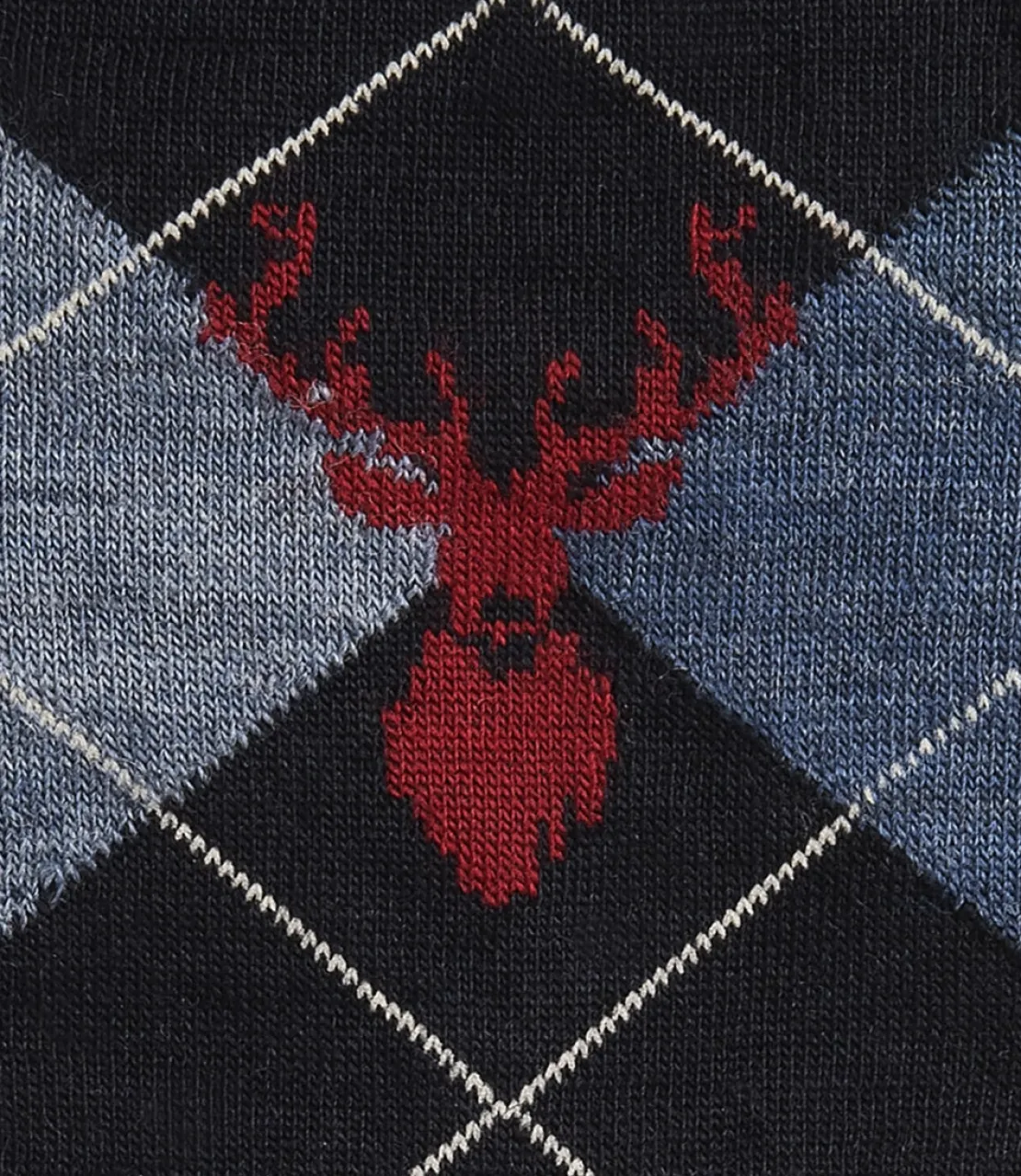 Premium Loake socks with a navy and blue chequered background pattern. These Loake accessories are perfect as an everyday sock, or even as a gift.rnMade in Britain, from 63% lightweight Wool and 37% Nylon.