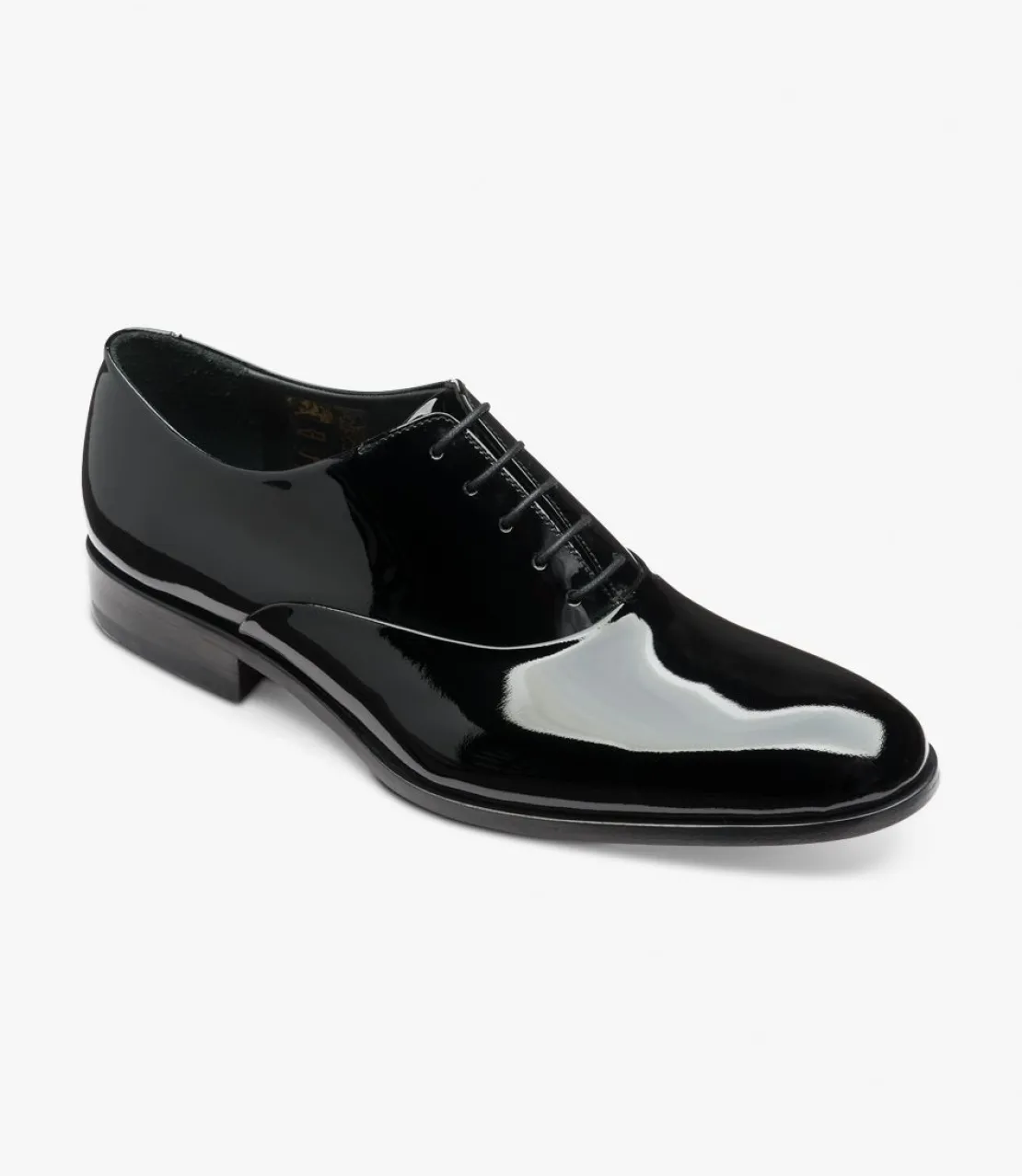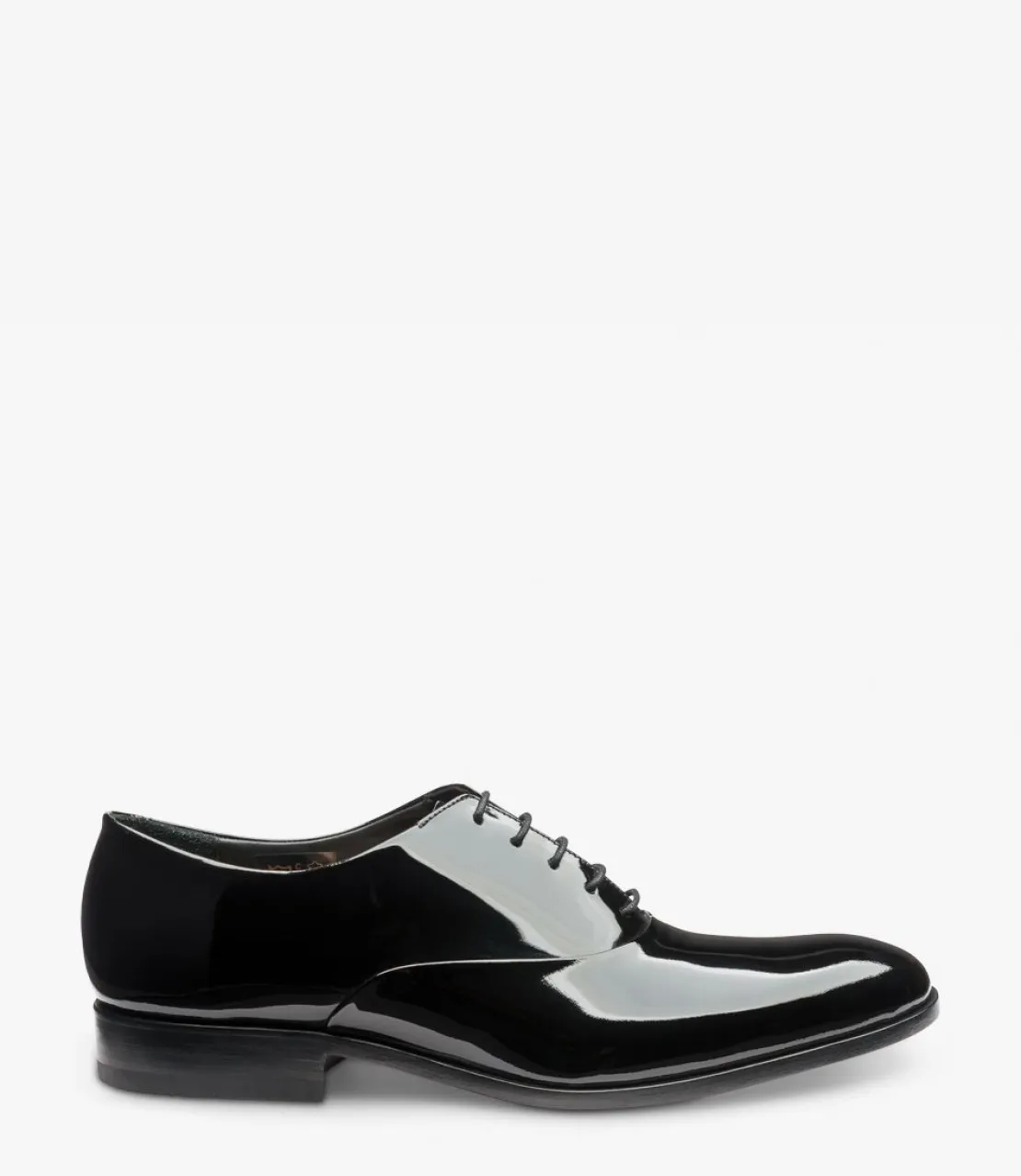 Black patent leather dress shoe, Handcrafted in India.