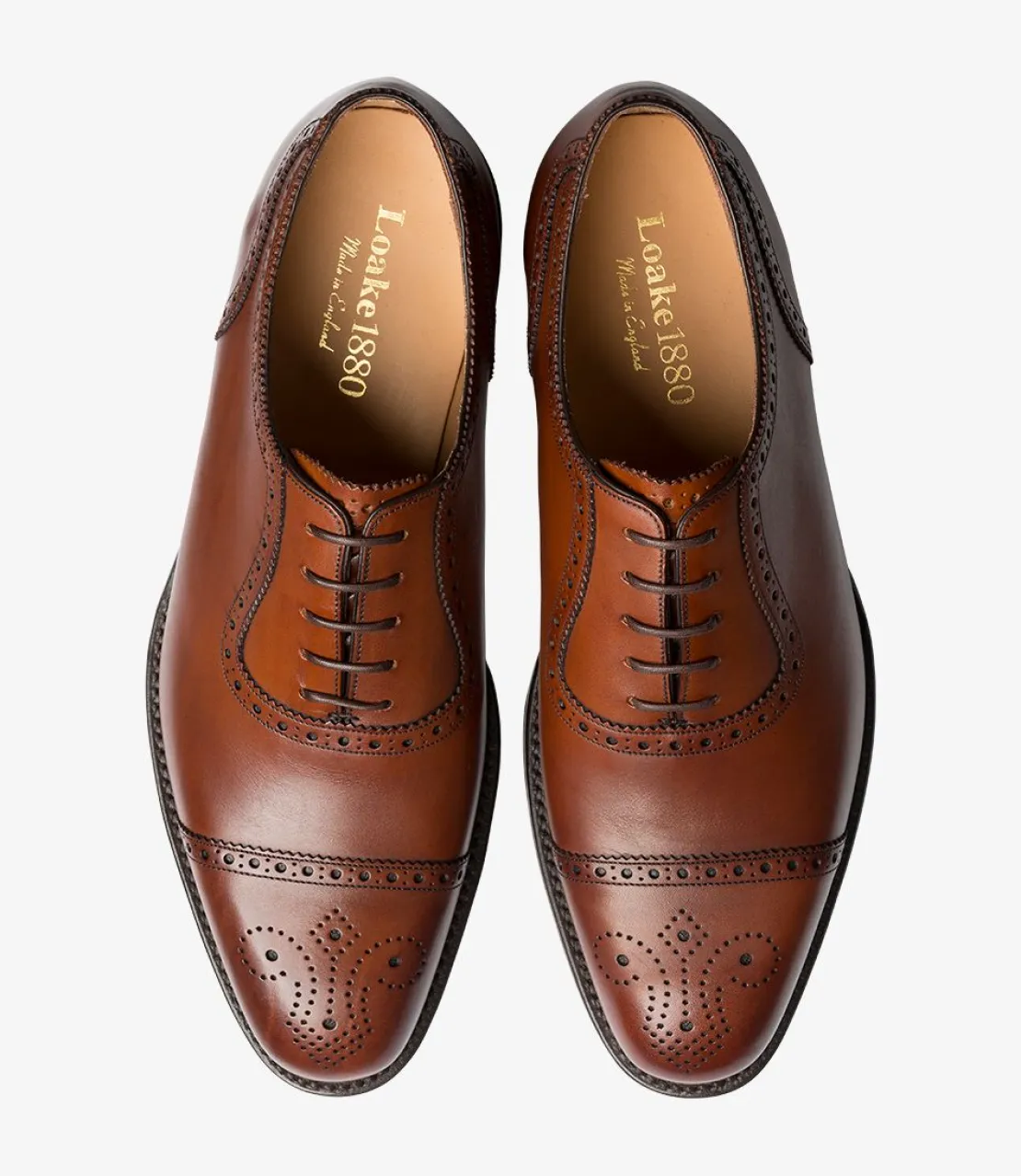 Premium semi-brogue shoe, available in mahogany or burgundy burnished calf and black calf leathers. Strand uses the Capital last shape in an F fitting, and is made in England.